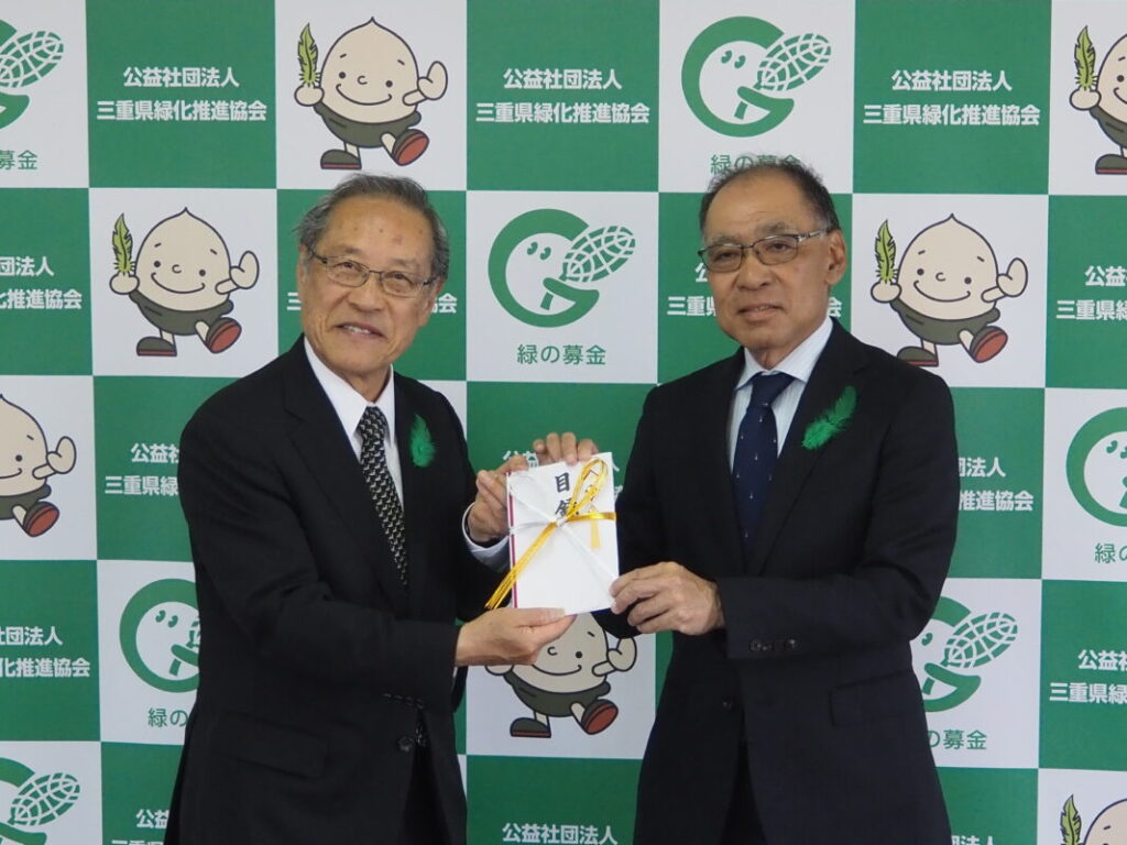企業活動の遂行にあたっては、環境に優しい企業を目指し、リデュース、リユース、リサイクルの3Rを推進し省資源に努められており、今回は、SDGs活動の一環として、三重県の緑化活動に貢献したいと考えられ、「緑の募金」として500,000円ご寄附いただいたものです。令和5年度から毎年ご寄附いただいており、今回で4回目となります。